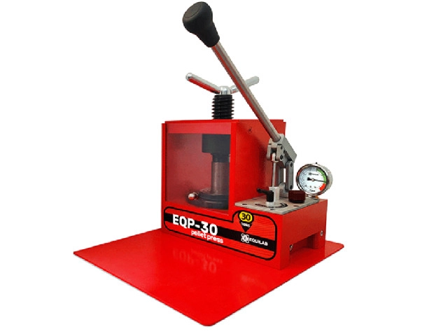 Model EQP-30 to ręczna prasa hydrauliczna o podwyższonym zakresie nacisku do 30 ton (dla tabletek 40mm). Łączy w sobie wytrzymałość i solidność z prostą i bezpieczną obsługą. System hydrauliczny zwielokrotnia siłę przykładaną przez użytkownika w chwili nacisku na dźwignię. Zastosowany system bezpieczeństwa automatycznie uwalnia ciśnienie nie dopuszczając do przekroczenia nacisku 30 ton. Do zastosowań laboratoryjnych: szkło, cement, gips, ceramika, próbki mineralne, krzemiany, żużel do technik analitycznych XRF, FTIR.
